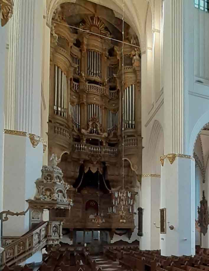 "Blicke auf die Stadt" - KMD Karl-Bernhardin Kropf imnprovisiert an der Orgel der Marienkirche zu Bildern der Stadt Rostock aus der Zeit um 1945.